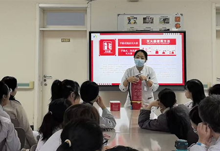 本次活动突破了传统的单向宣讲模式,更侧重于“教学”与“实操”相结合。在医护人员的细致讲解和示范下,患者们认真学习了灭火器、消防栓以及消防呼吸器等器材的正确使用方法。随后的模拟演练环节将活动推向高潮,患者们在专业指导下,亲自上场,勇敢提起灭火器,模拟扑灭初起火灾,整个过程紧张有序。