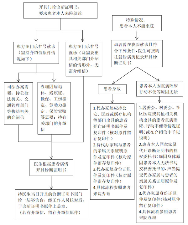 1.涉及司法办案需要,应持公检法机关、交通管理部门等执法机关的介绍信,方可开具诊断证明书;