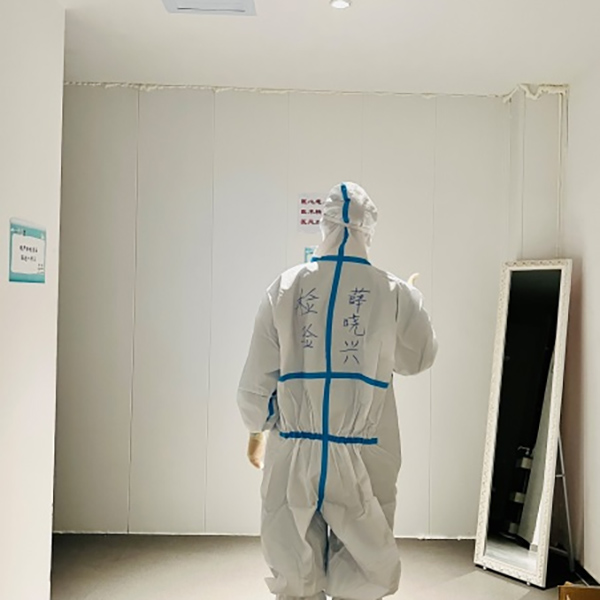 综合诊所分为清洁区和污染区,检验科的工作是在清洁区随时待命,收到检验申请后立即穿好防护服进入污染区到达工作岗位,为尽量缩短患者等待时间,我们以最快的速度检测标本,保证临床在最短的时间内拿到报告。并且检验科人员24小时在岗,检测不分昼夜,这就需要我们定时做室内质控、维护保养仪器,时刻保证仪器处于最佳状态。