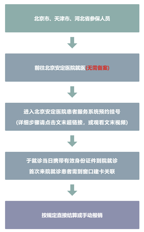 京津冀参保人员在北京安定医院的挂号流程如下: