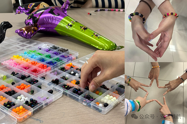 “我选了黑色代表我的抑郁,但它旁边我串了一颗橙色的南瓜和一颗小小的星星。” 一位患者展示着她刚刚完成的手链,“这提醒我,就像南瓜能在黑暗中成长一样,我也能在困境中找到转化的可能,而星星永远在那里。”