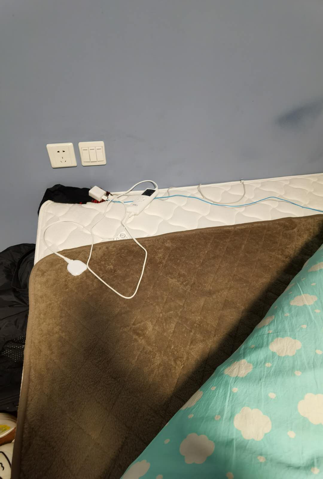 3.插线板放在床上使用、充电器长期插在插线板: